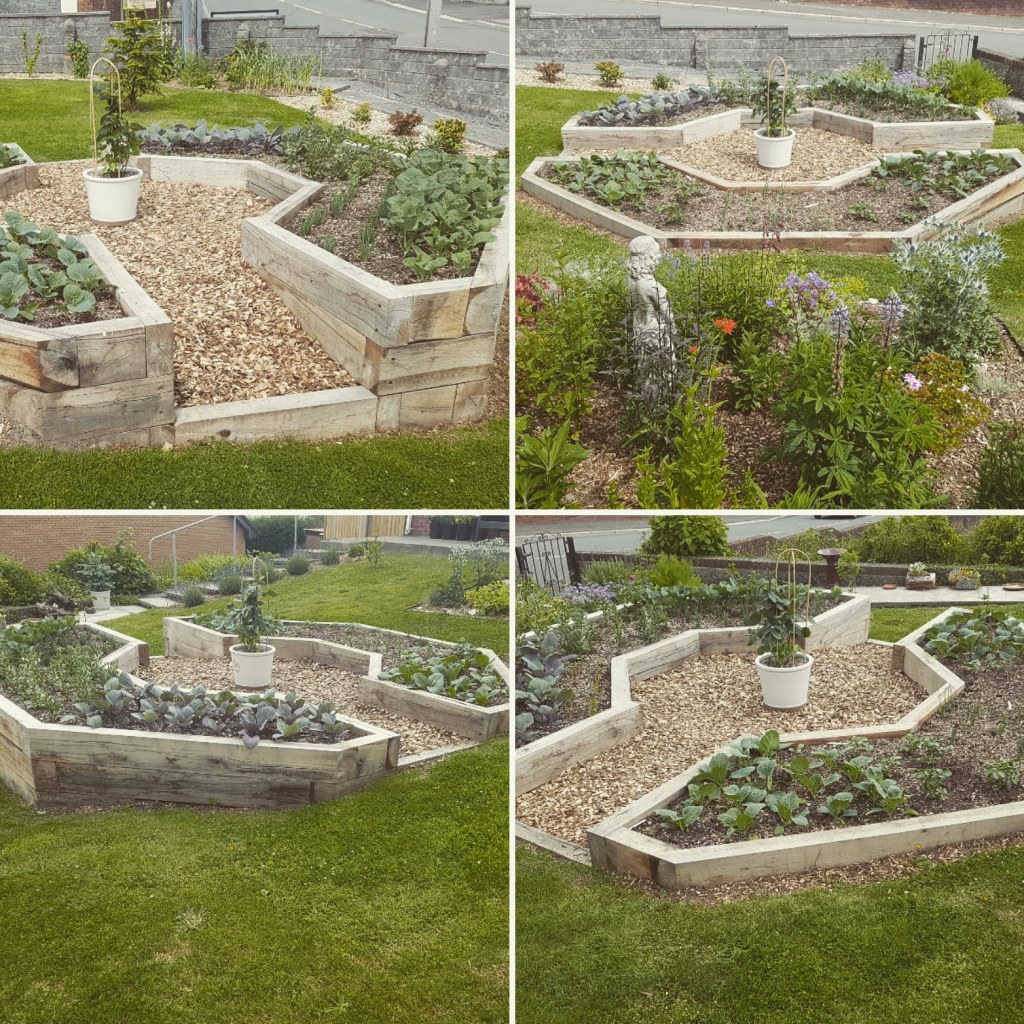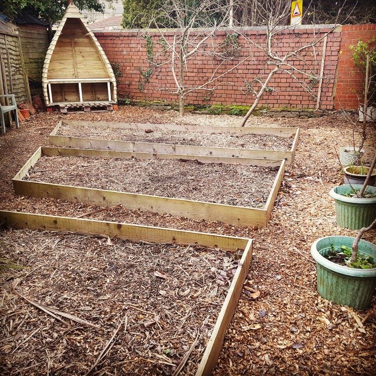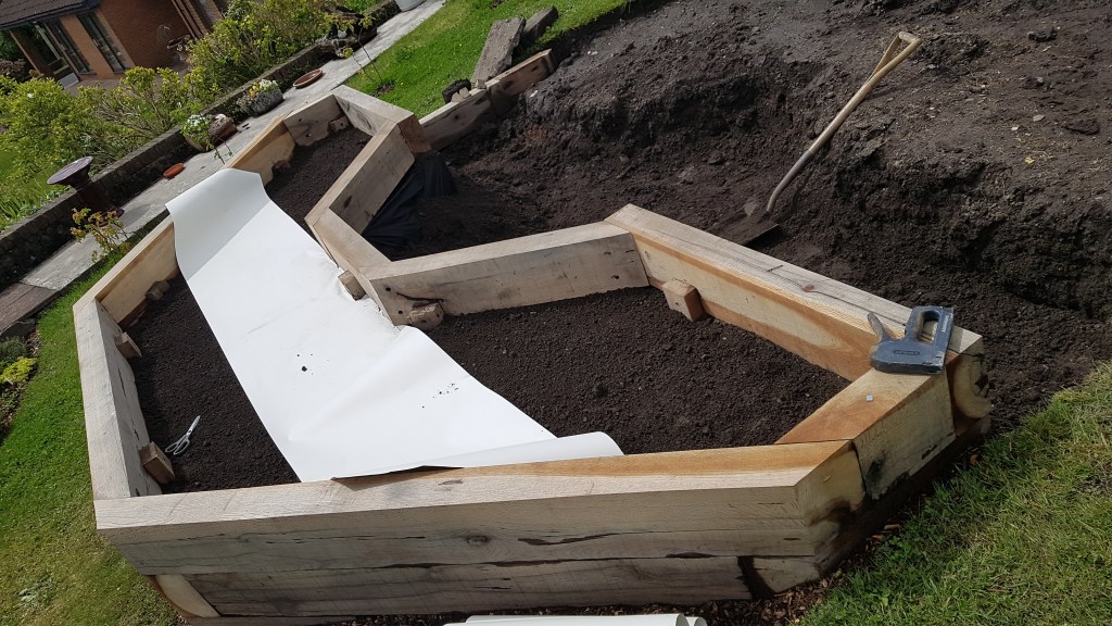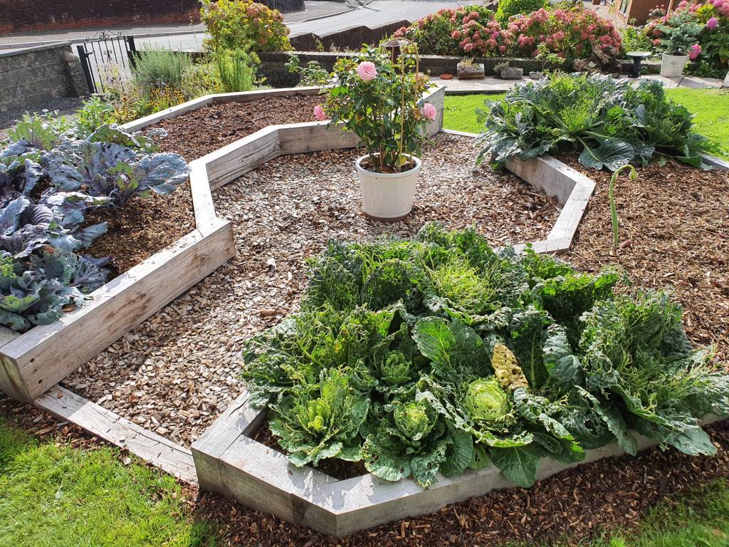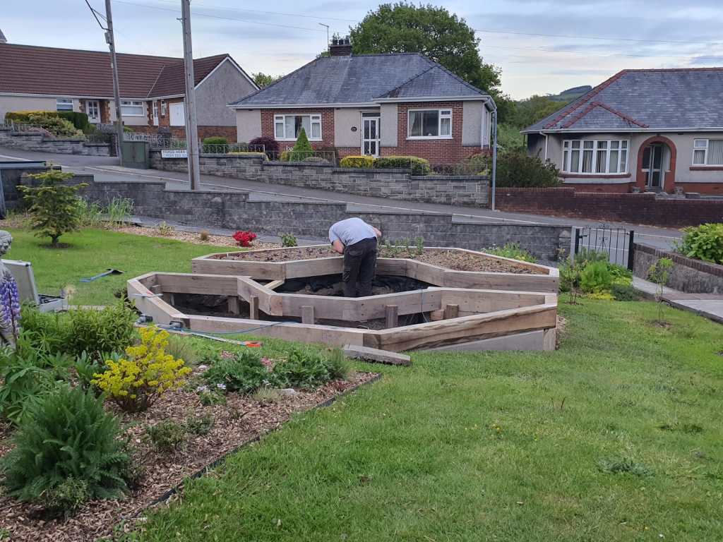 A space and cost saving garden build with beds that follow the shape of the boundary in order to have more growing space. The beds were made cost effectively using organically treated planks. The boat seat was also a nice project.