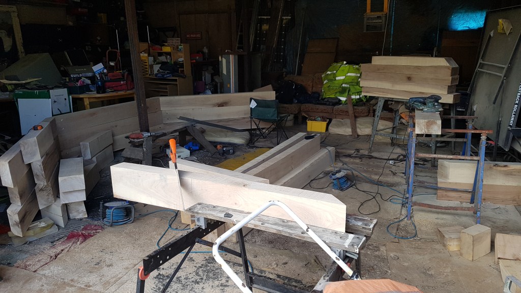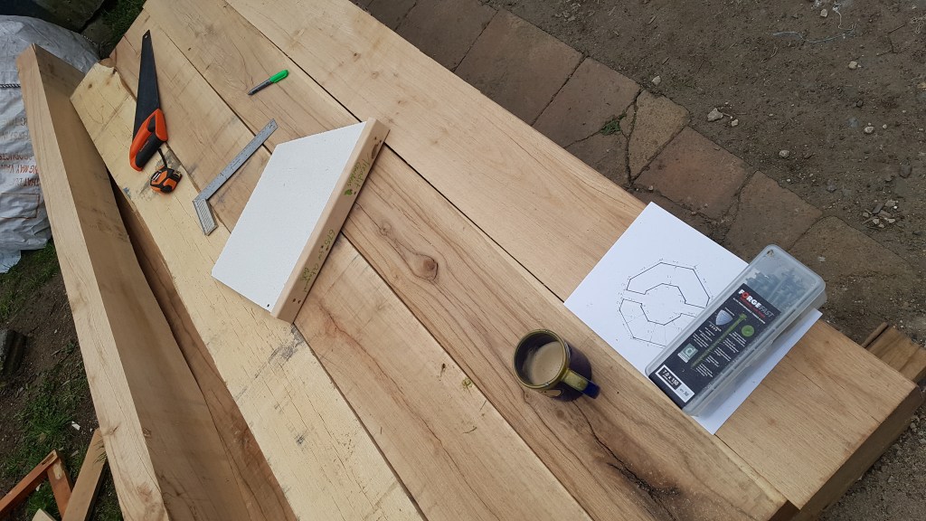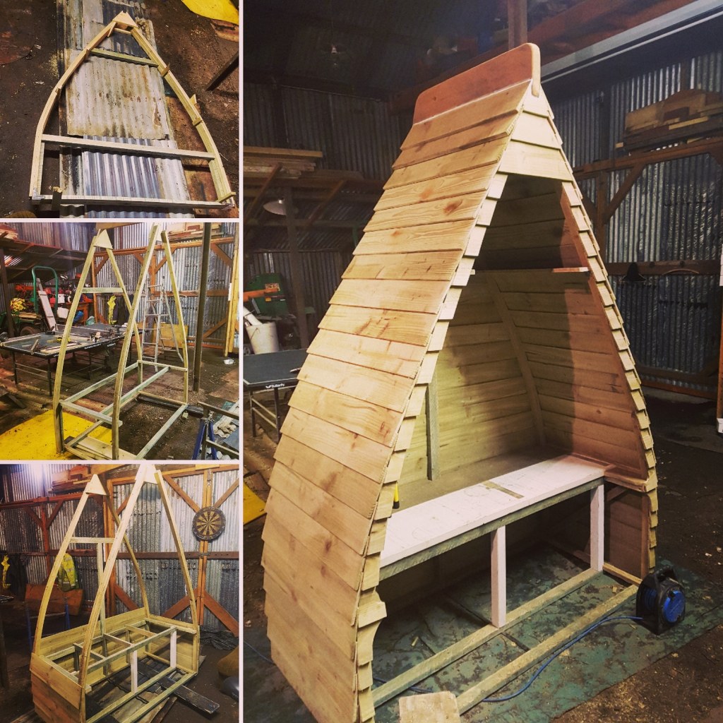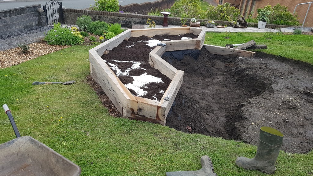 A space and cost saving garden build with beds that follow the shape of the boundary in order to have more growing space. The beds were made cost effectively using organically treated planks. The boat seat was also a nice project.