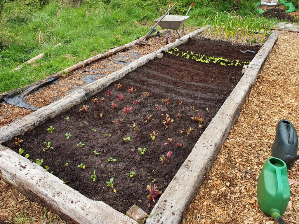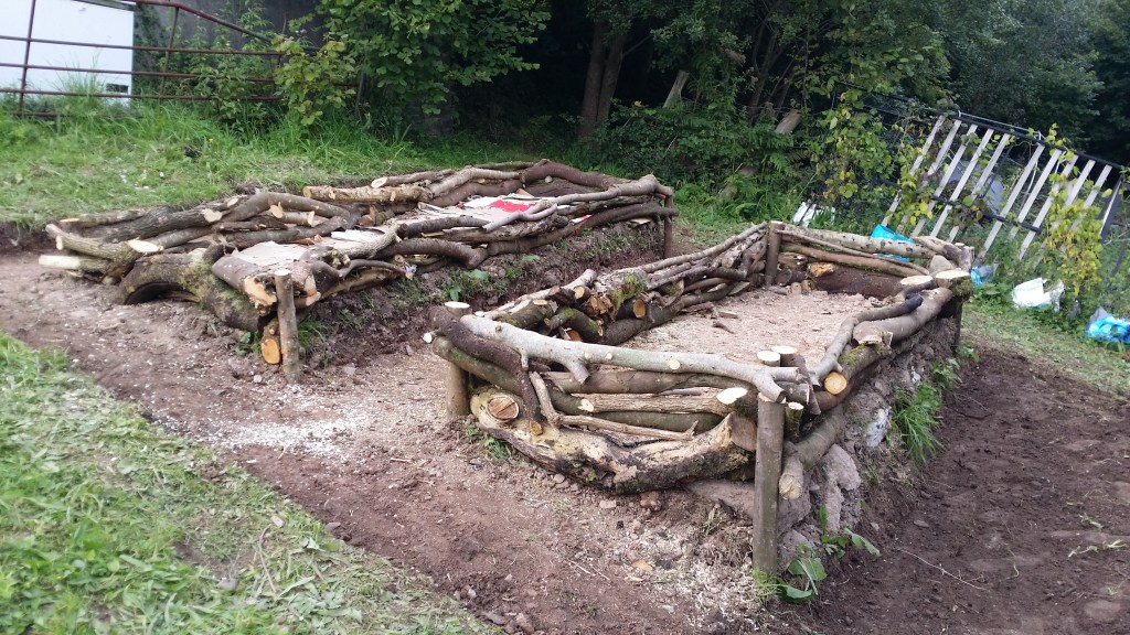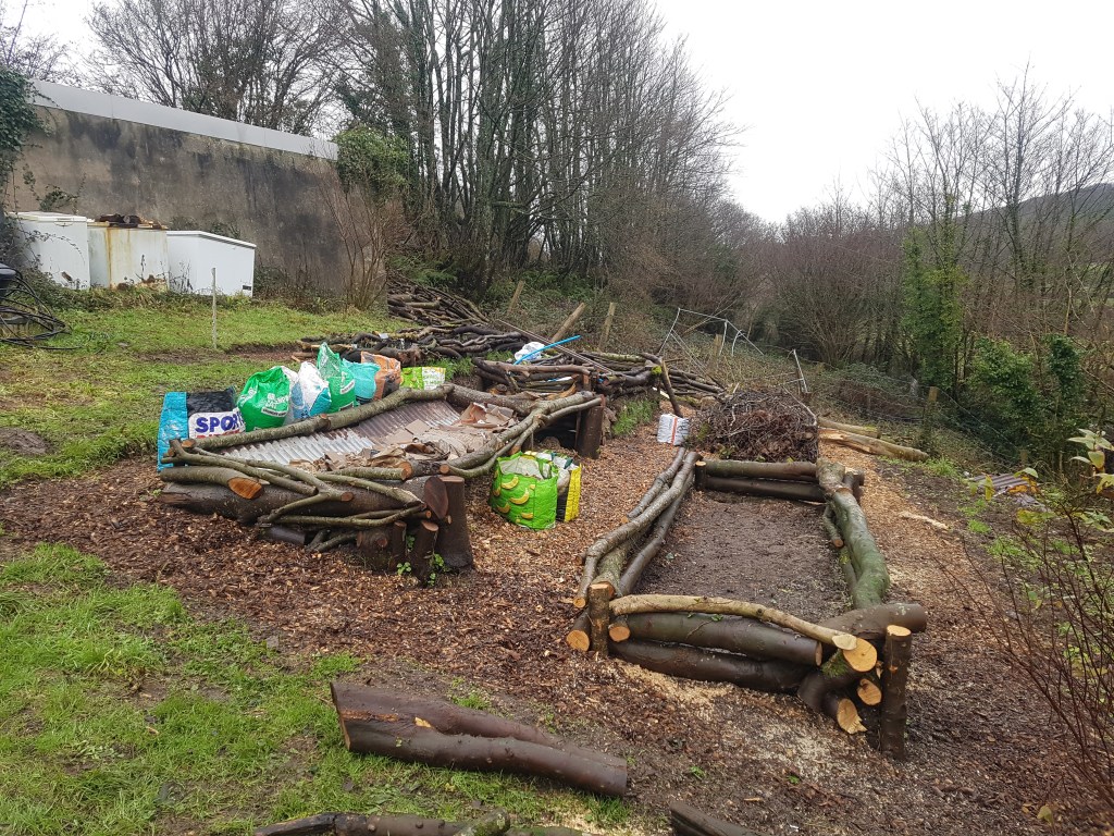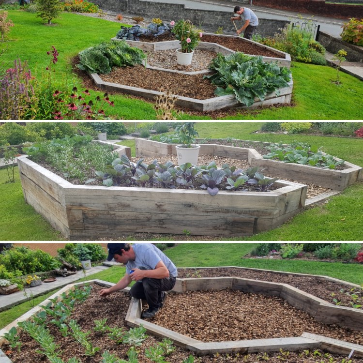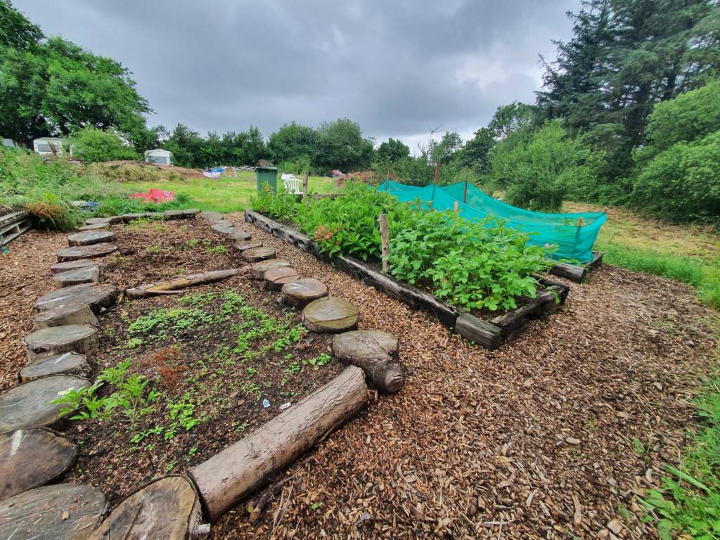 These beds were made using local felled trees. The aim was to recycle the wood into beds and terrace the beds with surrounding woodchip paths. The look beautiful and were carefully built for the owner.