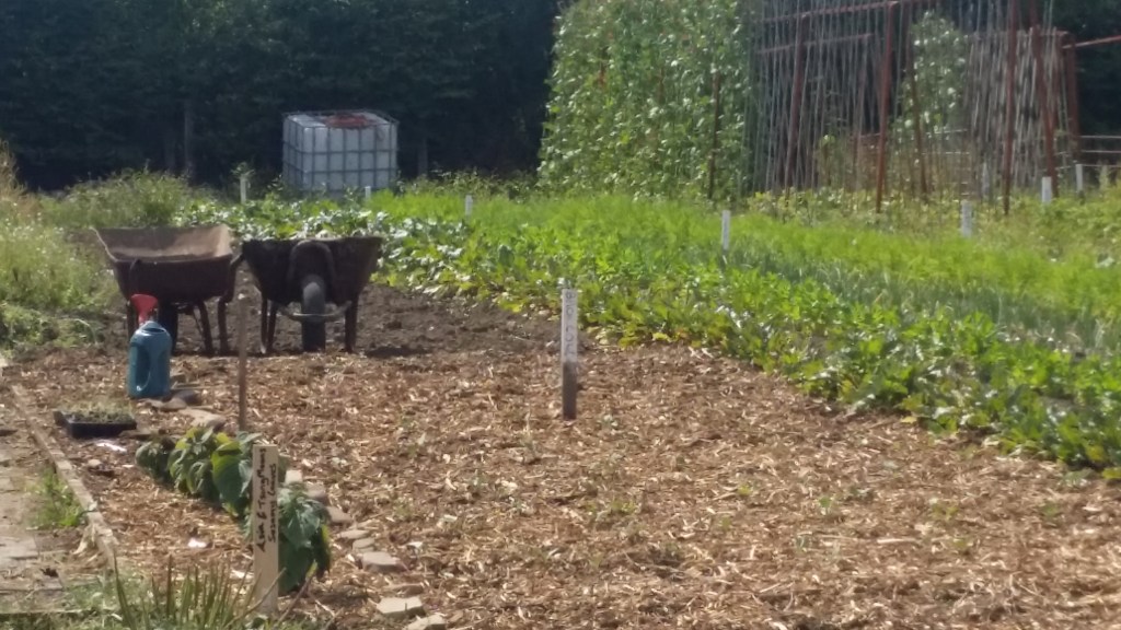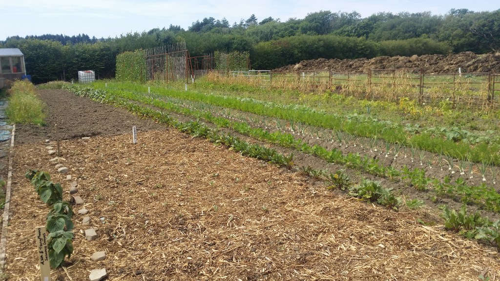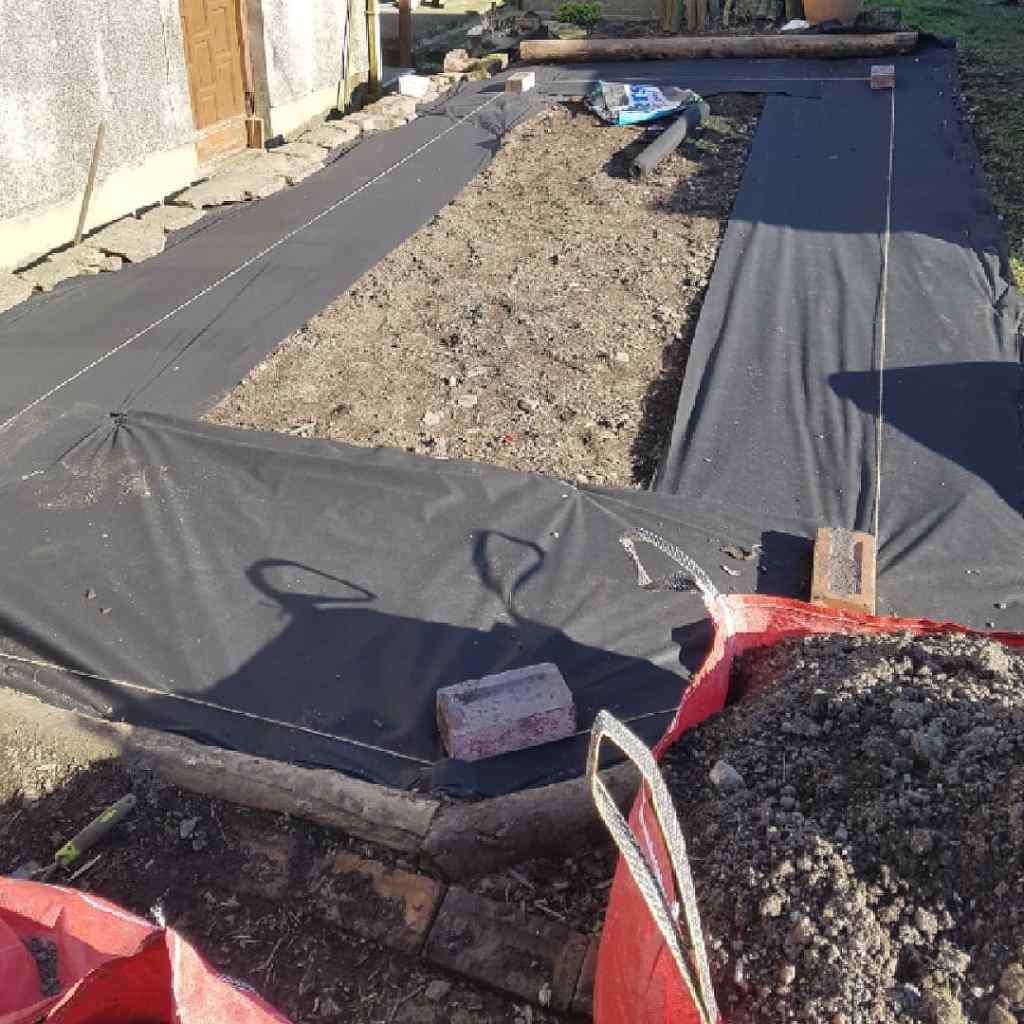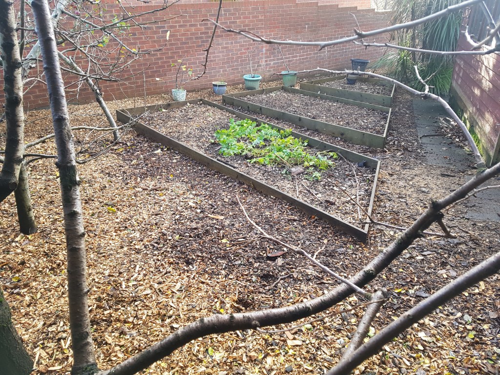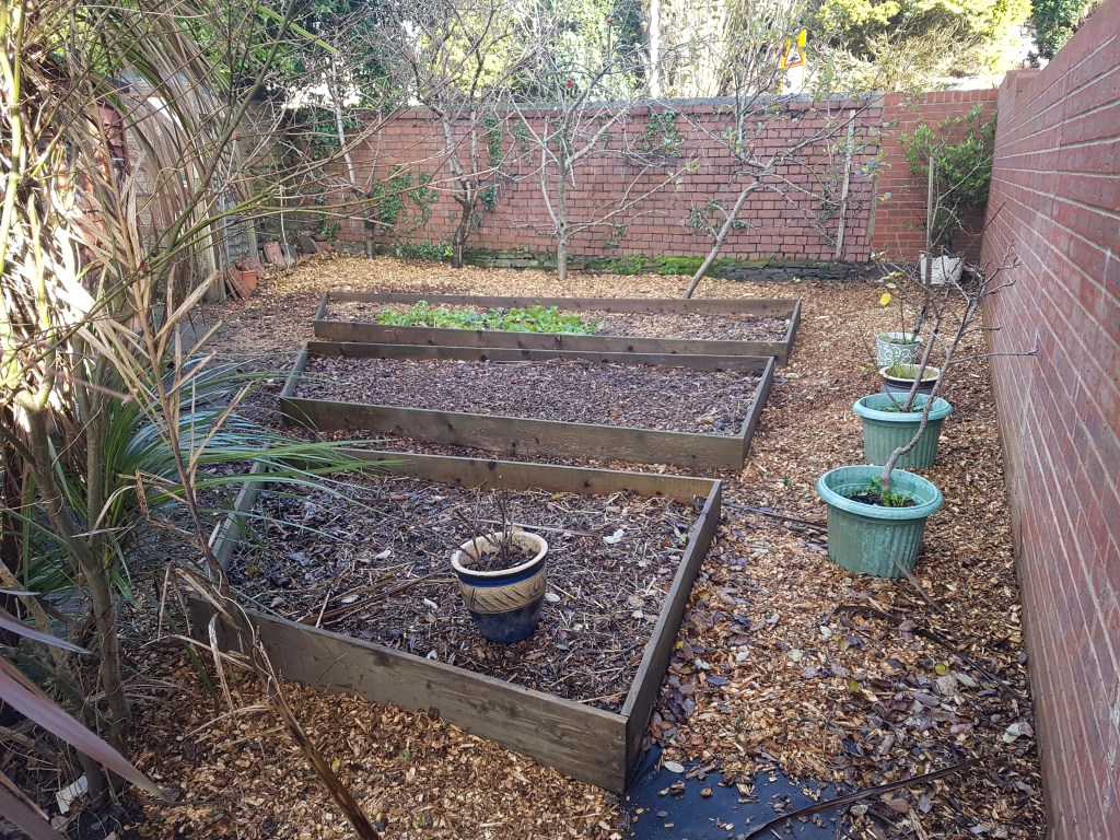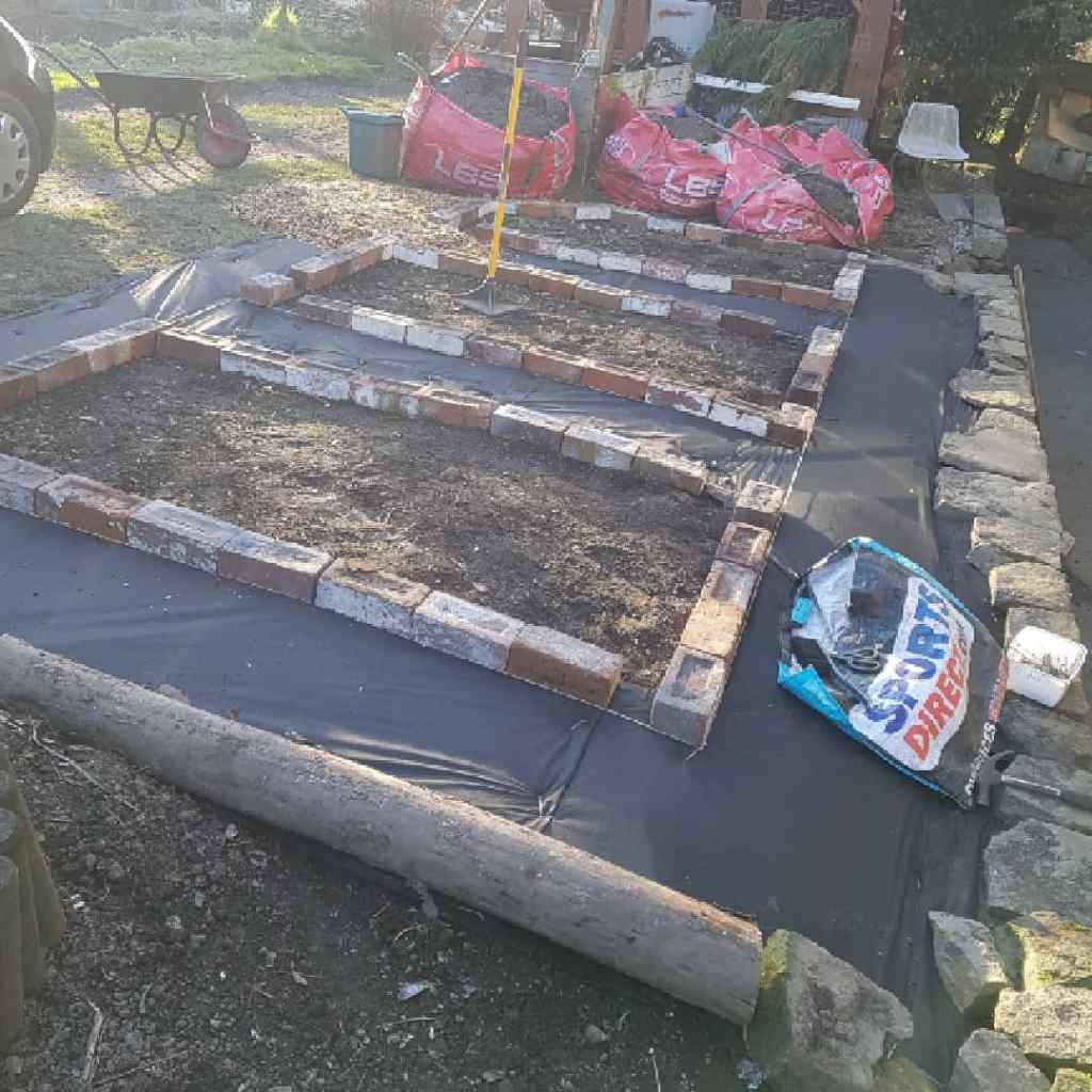 After knocking down some out buildings we ended up with piles of bricks, we used some of them to make these collective garden beds by removing the cement and placing them without cement. The gardens were layered with sub-weed soil, compost and woodchip.