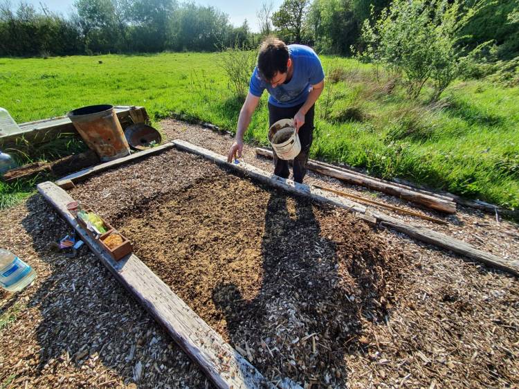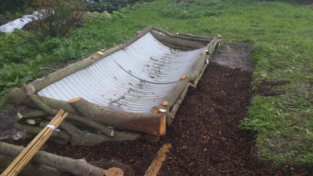 A feature garden which is also a ‘Collective’ garden. This bed is built into a slope and designed as a centre piece. The bed contains the layers of a collective garden and has been IMO treated. Most of the surrounding plants have been relocated to form a woodland garden in future years.