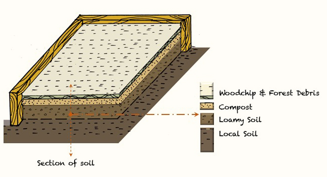 - The base layer which is the original local soil. This layer is a nutrient source but mostly a mineral source as many minerals come from the rock underground.